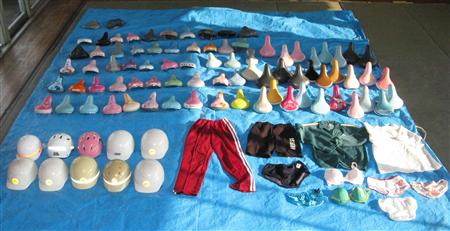 自転車のサドル78個やヘルメット10個、体操着などを発見した。