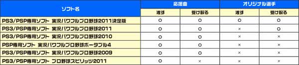 ※PS3版 PSP版『実況パワフルプロ野球2011』のオリジナル選手やアレンジチーム、応援曲データ、各種オプション設定を引き継ぐことができます。(対戦履歴は引き継ぐことができません)