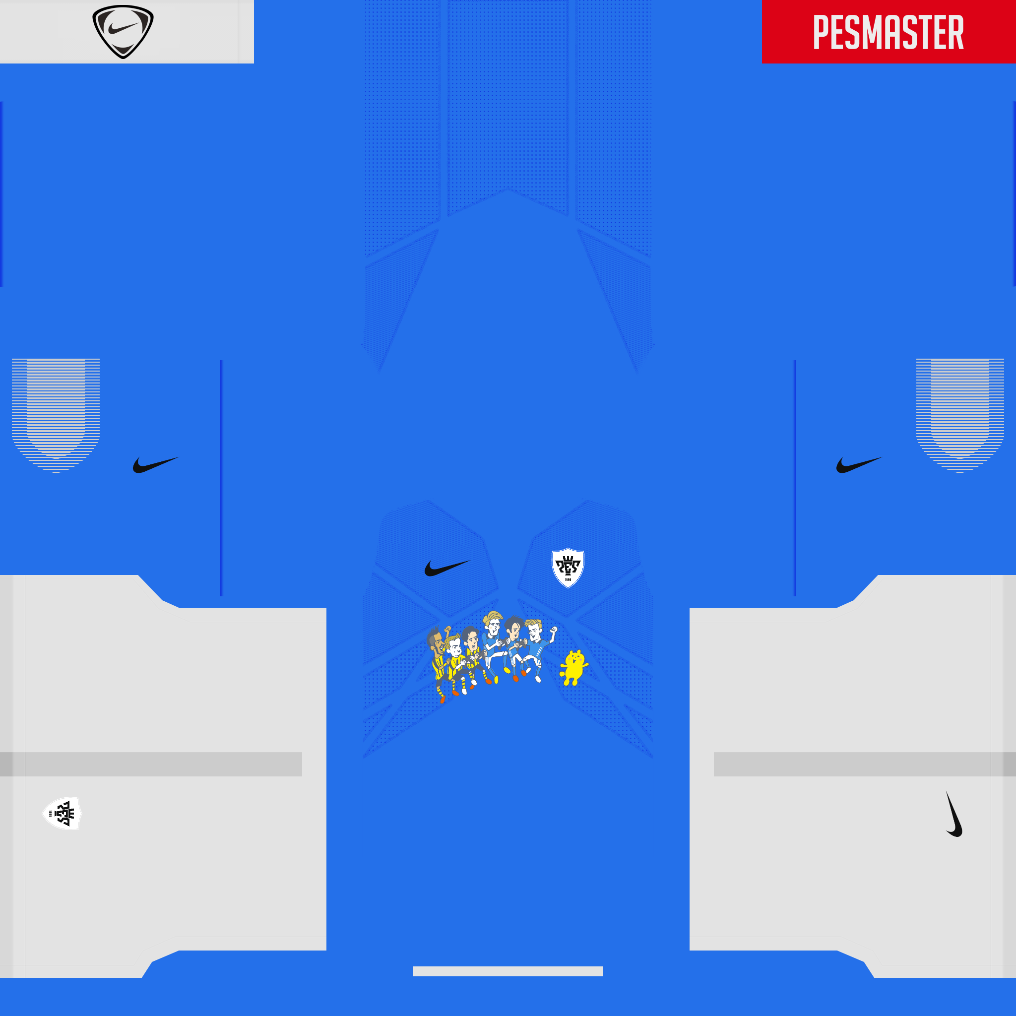 ( ‘A`)カンタン入力で創造可能なユニフォームメーカー「Kit Creator」を使って、1着ほど作成してみました。(当サイトの最下部のブックマークより、アクセス可能です)。今回はですね、ナイキをサプライヤーに、やや淡い青×白×青の組み合わせをセレクト、フロント部分には根幹となるデザインをあてがってみました。
